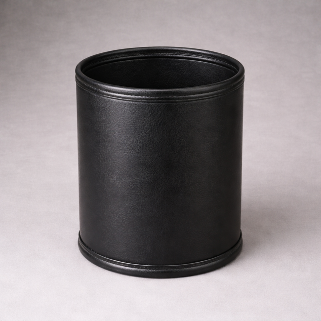 Oval Leatherette Wastebasket is ideal for guest rooms, bathrooms, and offices, offering a perfect balance of durability and refined design. Made from high-density polyethylene with an elegant faux leatherette exterior, this one-piece wastebasket will not rust, dent, crack, or leak, making it well suited for daily hospitality use.